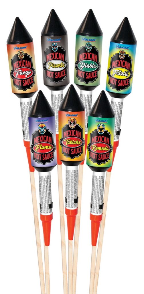 7- delig vuurpijlen assortiment met een bijzonder smaakvol en pittig design. Chili Con Bang Rocket assortment Goedkoop vuurwerk kopen bij Vuurwerkwinkel Coevorden