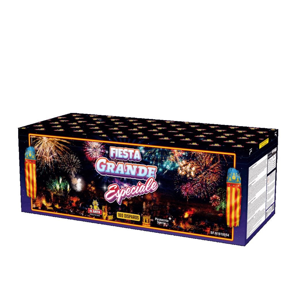 n nFiesta Grande Especial is een 30mm compound met de volgende effecten: V-Shape, W-Shape in een 100 schots. n n El Gato Vuurwerk Fiesta Grande Especial (batch25) 100 Shots Goedkoop vuurwerk kopen bij Vuurwerkwinkel Coevorden
