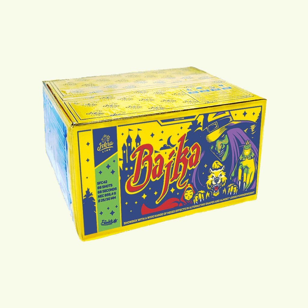n nShowbox mit einer großen Auswahl an gemischten Effekten in verschiedenen Formen und fast 1.000g Pulvergewicht. n n Iskra Line Bajka 66 shots Goedkoop vuurwerk kopen bij Vuurwerkwinkel Coevorden