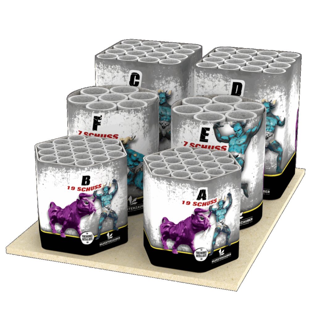n nStoere compound van 6 batterijen met verschillende kalibers. In totaal 84 schoten, 1 keer aansteken! n n Lesli Vuurwerk Bulls On Parade 84 shots Goedkoop vuurwerk kopen bij Vuurwerkwinkel Coevorden