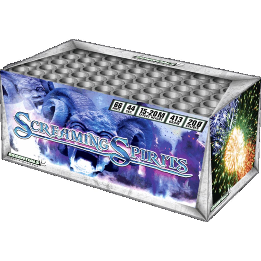 n nKrachtig kleurenspektakel voor een zachte prijs. Essentials cake met 66 schoten. n n Lesli Vuurwerk Screaming Spirits 66 shots Goedkoop vuurwerk kopen bij Vuurwerkwinkel Coevorden