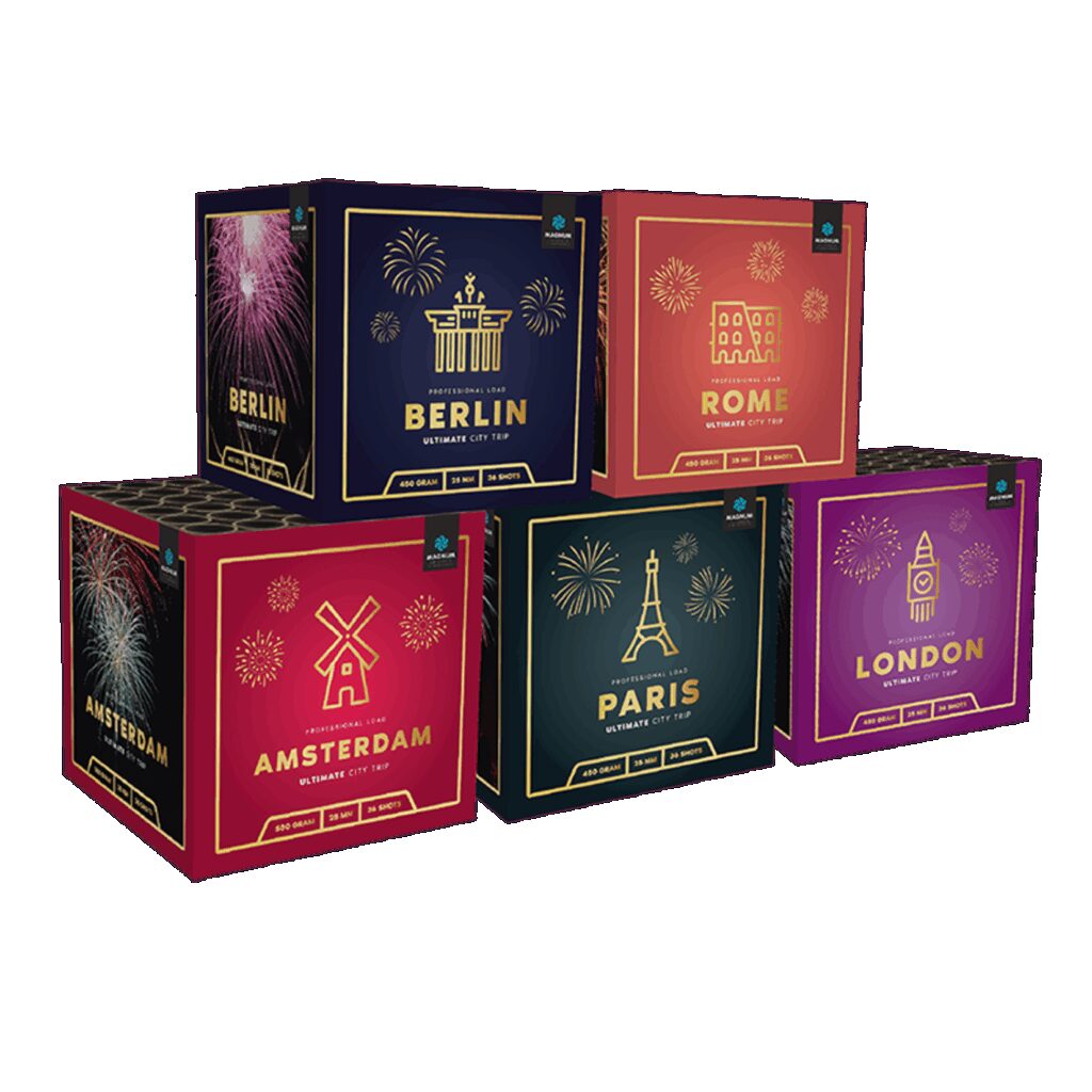n n5 verschillende 36 shots 500 gram cakes met de mooiste en best geselecteerde effecten. Absoluut top assortiment! n n Magnum Vuurwerk Final City Trip Goedkoop vuurwerk kopen bij Vuurwerkwinkel Coevorden