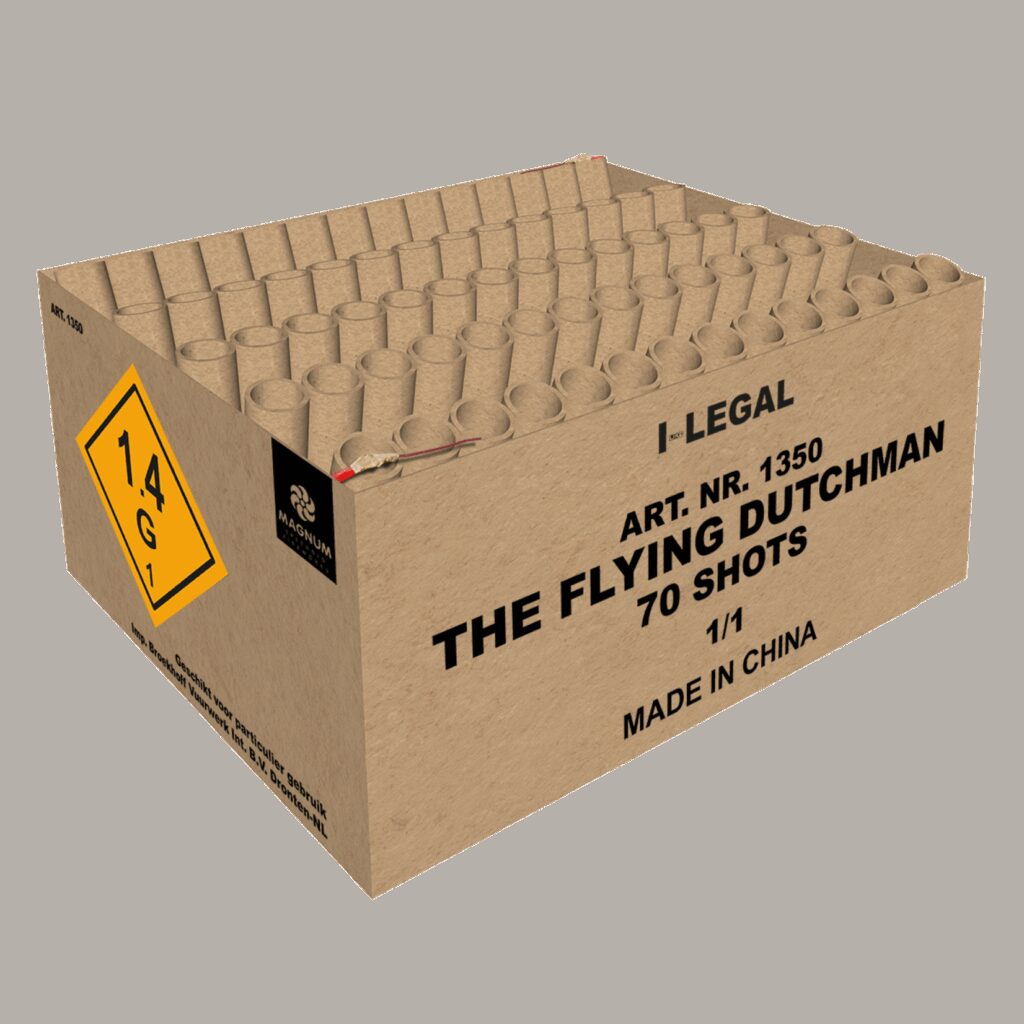 n nDie Effekte fliegen dir nur so um die Ohren mit dieser 70-Schuss-Compound-Batterie. Einmal zünden und die Show genießen! n n Magnum Vuurwerk The Flying Dutchman 70 schuss Goedkoop vuurwerk kopen bij Vuurwerkwinkel Coevorden