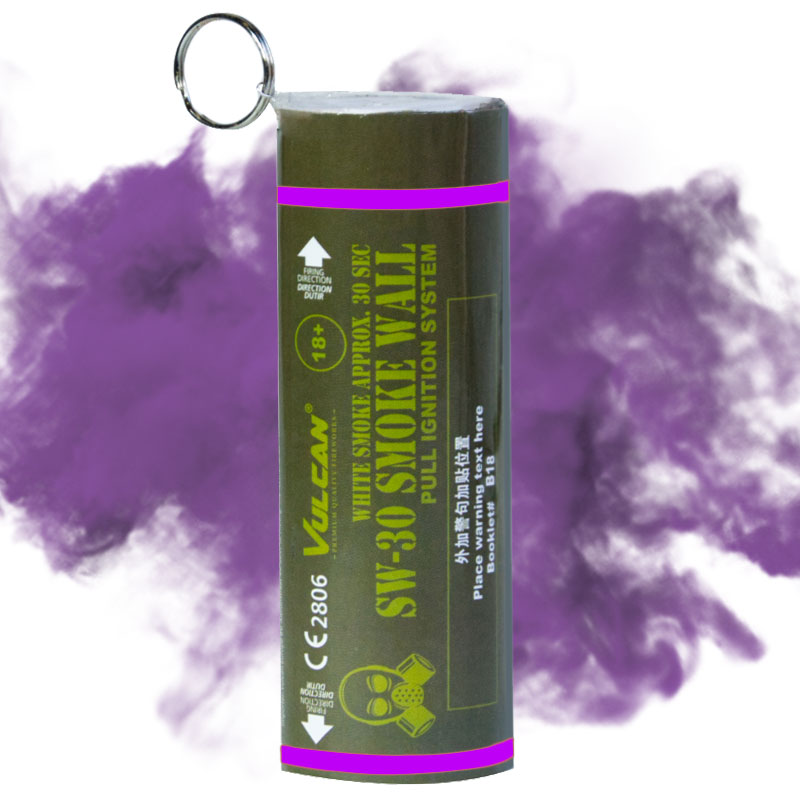 Ontdek de rook muur Paars met pin, die 30 seconden levendige rode rook van beide kanten levert. Til elk evenement naar een hoger niveau met deze opvallende, gebruiksvriendelijke rookvertoning.